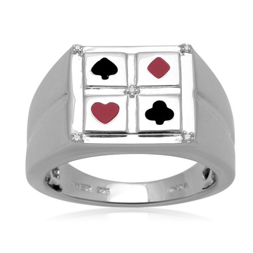 @@@ Product Details : Men's Sterling Silver Enamel Poker Diamond Ring (0.01 cttw, I-J Color, I3 Clarity), Size 13
