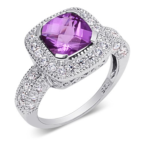 Buy Now! Celebrity Style 2.75 carats Cushion Cut Checker Board Amethyst & White CZ Size 9 Gemstone Ring in Sterling Silver