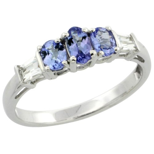 Low Price : 10k White Gold Ladies' Stone Ring, w/ 0.75 Total Carat Baguette White Sapphire Stones & Oval Cut Tanzanite Stones, 3/16 in. (5mm) wide, size 7