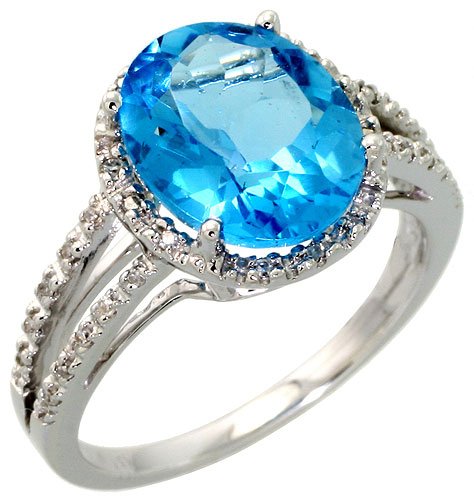 Review Best : 14k White Gold Large Stone Ring, w/ 0.11 Carat Brilliant Cut Diamonds & 4.79 Carats 11x9mm Oval Cut Blue Topaz Stone, 1/2" (12.5mm) wide, size 6.5