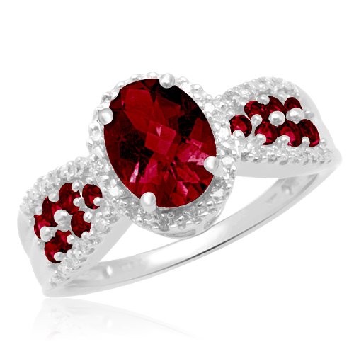 Review Best : 10k White Gold Checkerboard Oval Garnet Center with Round Garnet and Diamonds Ring, Size 7
