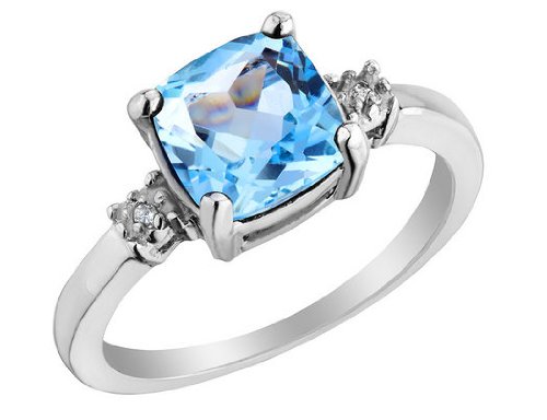 @@@ Blue Topaz Ring with Diamond Accent 2.0 Carat (ctw) in Sterling Silver, Size 8 - - Review by Christopher
