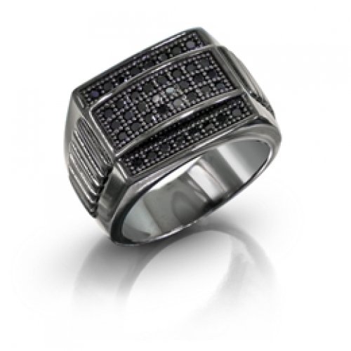 @@@ Bling Jewelry 925 Sterling Silver Black Rhodium CZ Black Mens Ring Championship size 13 - - Review by Dane