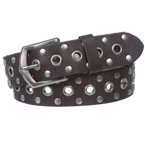 Buy Now! Snap On Soft Hand Oil-Tanned Vintage Grommets & Studs Solid Leather Belt Size: M (33"-35") Color: Black